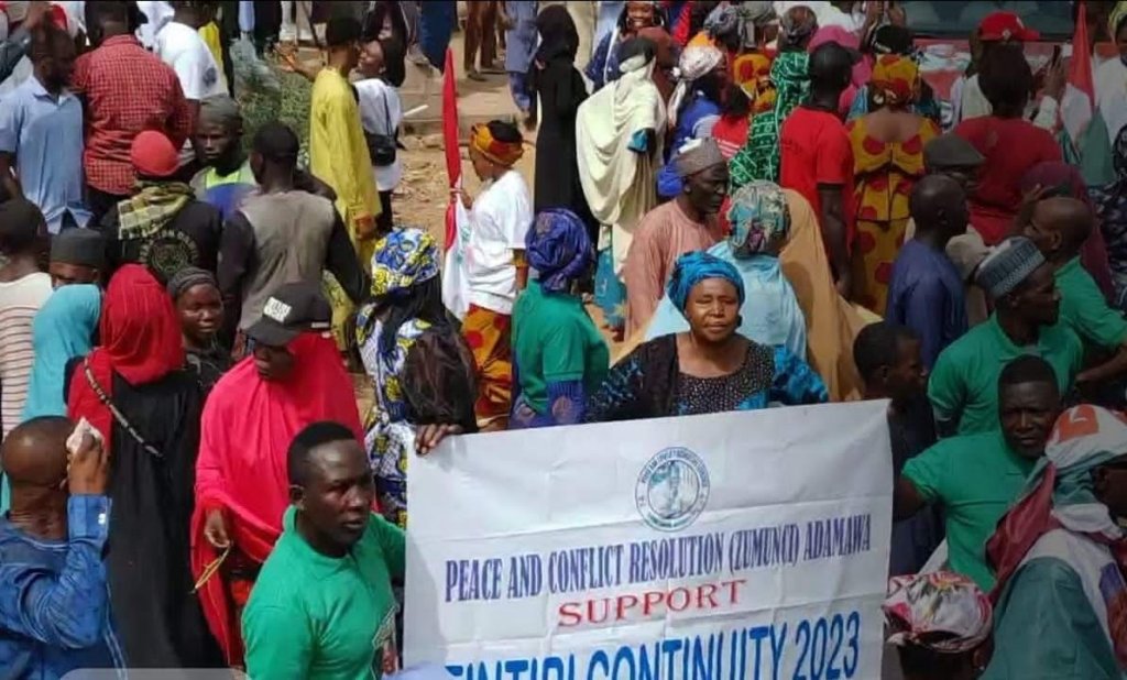Six support groups of the PDP in Adamawa have staged a massive protest Walk around Yola, the Adamawa state capital demanding for a free, fair and peaceful conduct of the rescheduled rerun elections in Adamawa come Saturday, 15th of April, 2023.